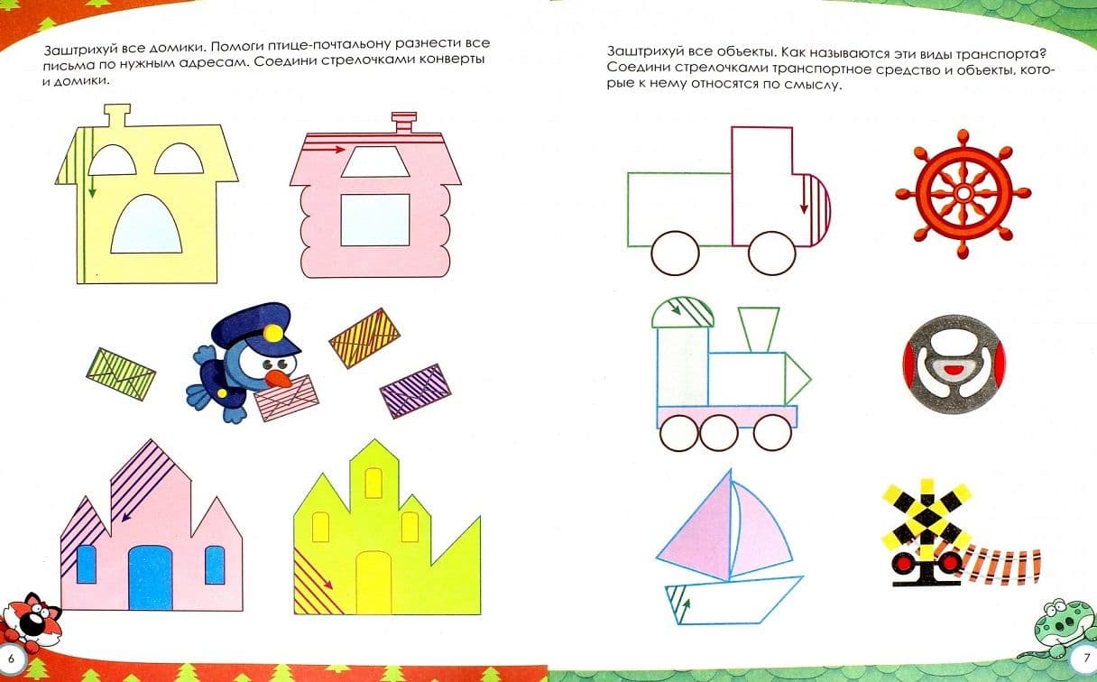 Эта тетрадь предназначена для самостоятельных занятий детей старшего дошкольного возраста. Цель этих занятий — развитие произвольного внимания, зрительного восприятия, мелкой моторики и координации движений руки, умения ориентироваться на листе бумаги. Перед началом занятий объясните ребенку, что нужно сделать, и сразу дайте ответ на все его вопросы. Это позволит малышу в дальнейшем заниматься без вашей помощи. В тетради вы найдете упражнения на разные виды штриховки: прямыми, волнистыми, ломаными линиями в разных направлениях. Напомните ребенку, что штриховать нужно аккуратно: не выходить за контуры фигур и проводить линии параллельно, на одинаковом расстоянии друг от друга. Не забудьте похвалить ребенка за старание!
