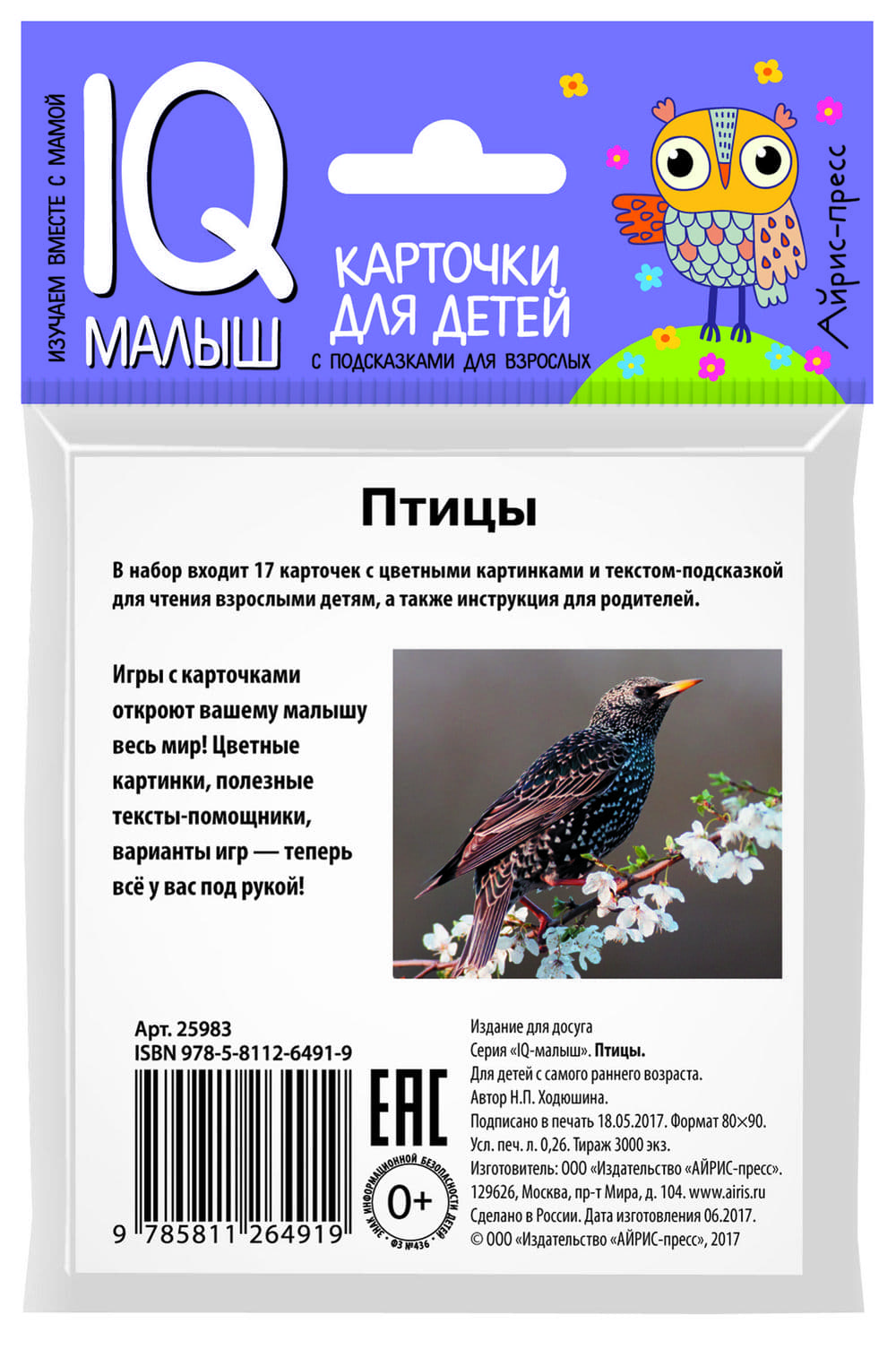 Игры с карточками не просто знакомят малыша с нашим удивительным миром, они развивают память, зрительное и слуховое восприятие, расширяют словарный запас, формируют интеллект. С помощью этого набора двусторонних карточек ребёнок познакомится с разными птицами. В комплект входит 17 карточек с цветными картинками и текстом-подсказкой на обороте для чтения взрослыми детям, а также карточка с инструкцией для родителей. Виды: кукушка, скворец, аист, соловей, ласточка, ворона, зимородок, голубь, воробей, клест, снегирь, иволга, орел, лебедь, глухарь, синица,сорока.  + 17 двусторонних карточек с картинками. + Яркая глянцевая печать. + Плотный картон. + Простая инструкция для занятий. + 2 игры для усвоения новых знаний.