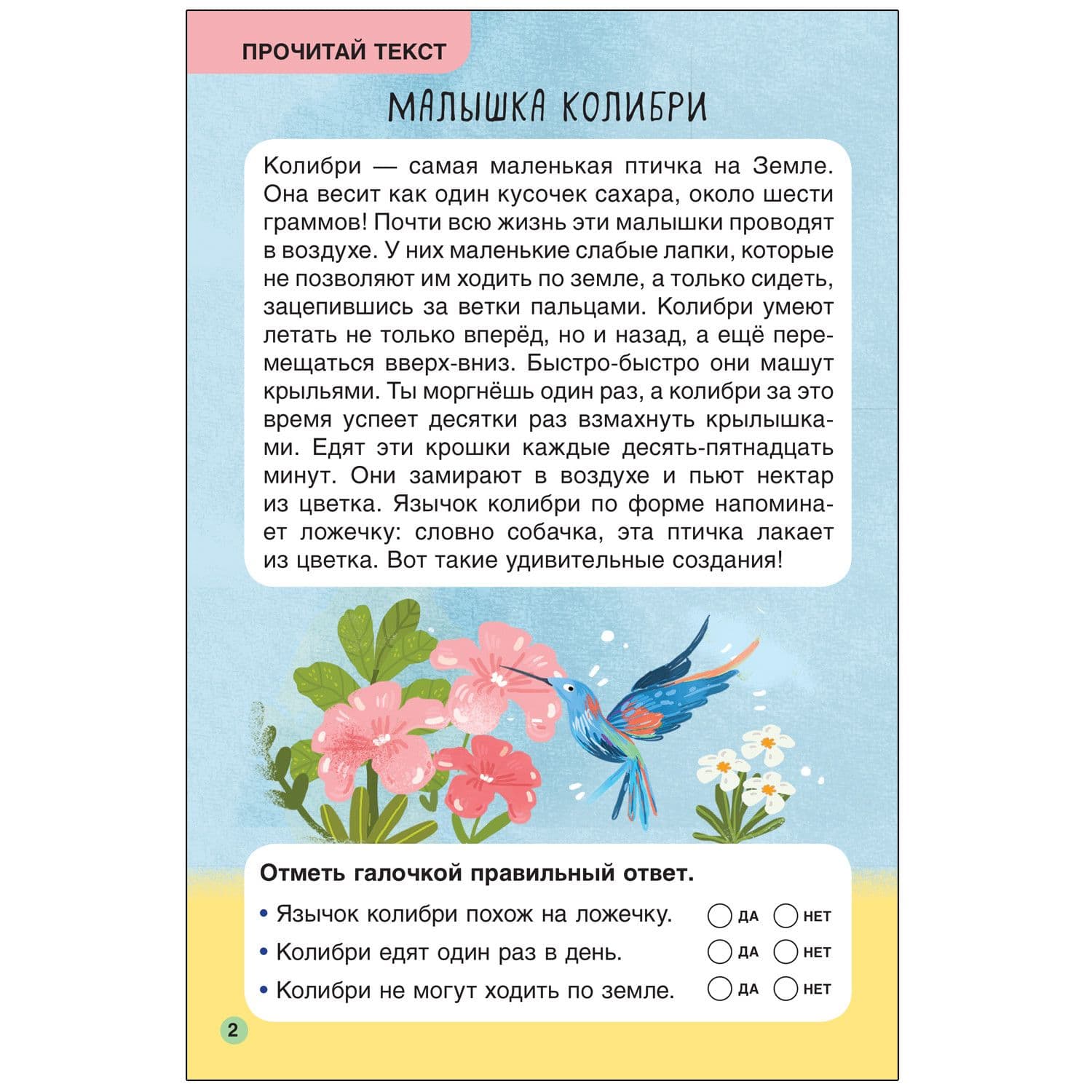 Ребенок познакомится с самыми необычными животными, а реалистичные иллюстрации помогут погрузиться в удивительный животный мир нашей планеты. К каждому тексту прилагаются вопросы на понимание, а также разноплановые задания. Все тексты написаны специально для первого чтения. Благодаря крупному шрифту и небольшому объему и тексты, и задания ребенок сможет прочитать самостоятельно.