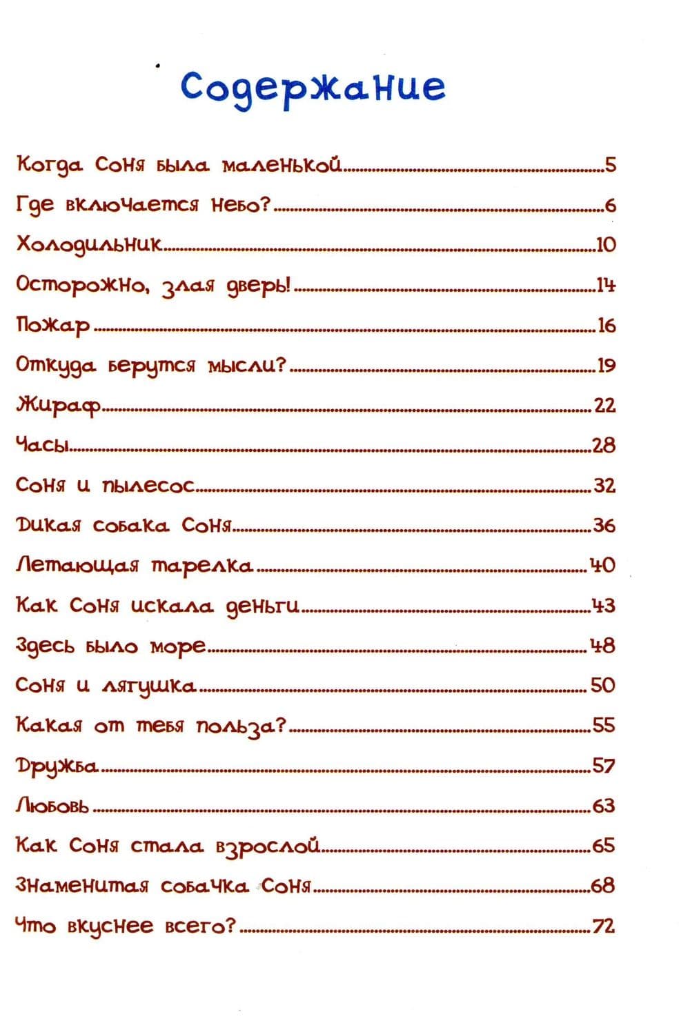 Долгожданное продолжение истории об умной собачке Соне, в котором читатели обязательно встретятся со старыми героями и поближе познакомятся с новыми, а еще узнают, что может быть вкуснее сосисок, кто разбил Соне сердце, как она снялась в рекламе, училась определять время и, конечно, как она стала знаменитой. Иллюстрации Евгения Антоненкова.