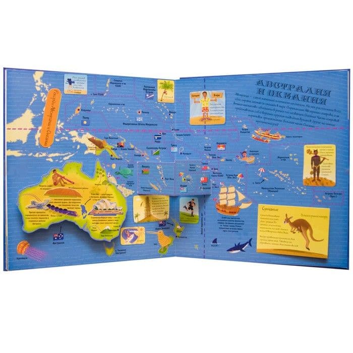 Вас ждут замечательные объемные карты материков, интересные факты о самых разных уголках нашей планеты, знаменитые достопримечательности и множество сюрпризов!