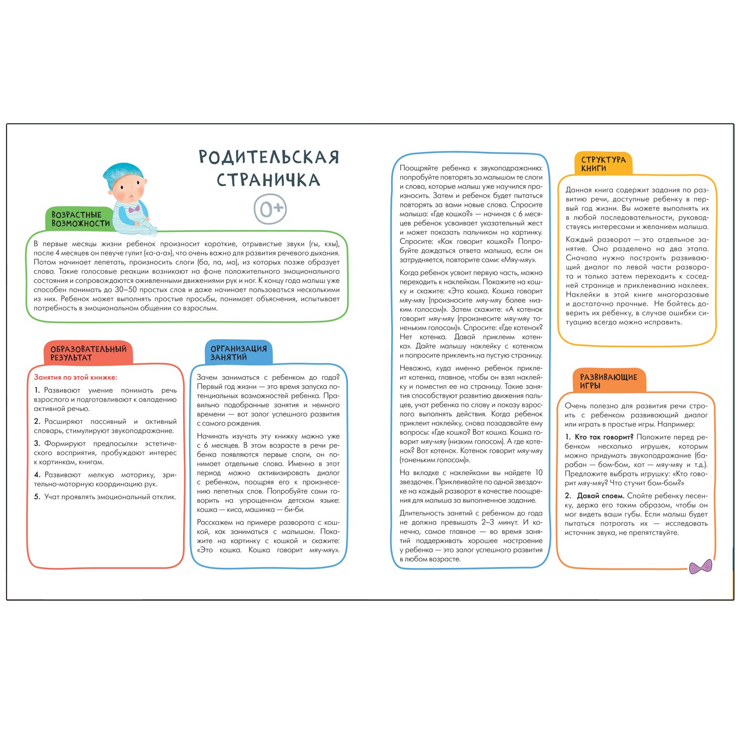 Книга «Развитие речи 0+» из серии «Школа Семи Гномов. Активити с наклейками» предназначена для развития речи и формирования словарного запаса у детей от рождения до года.