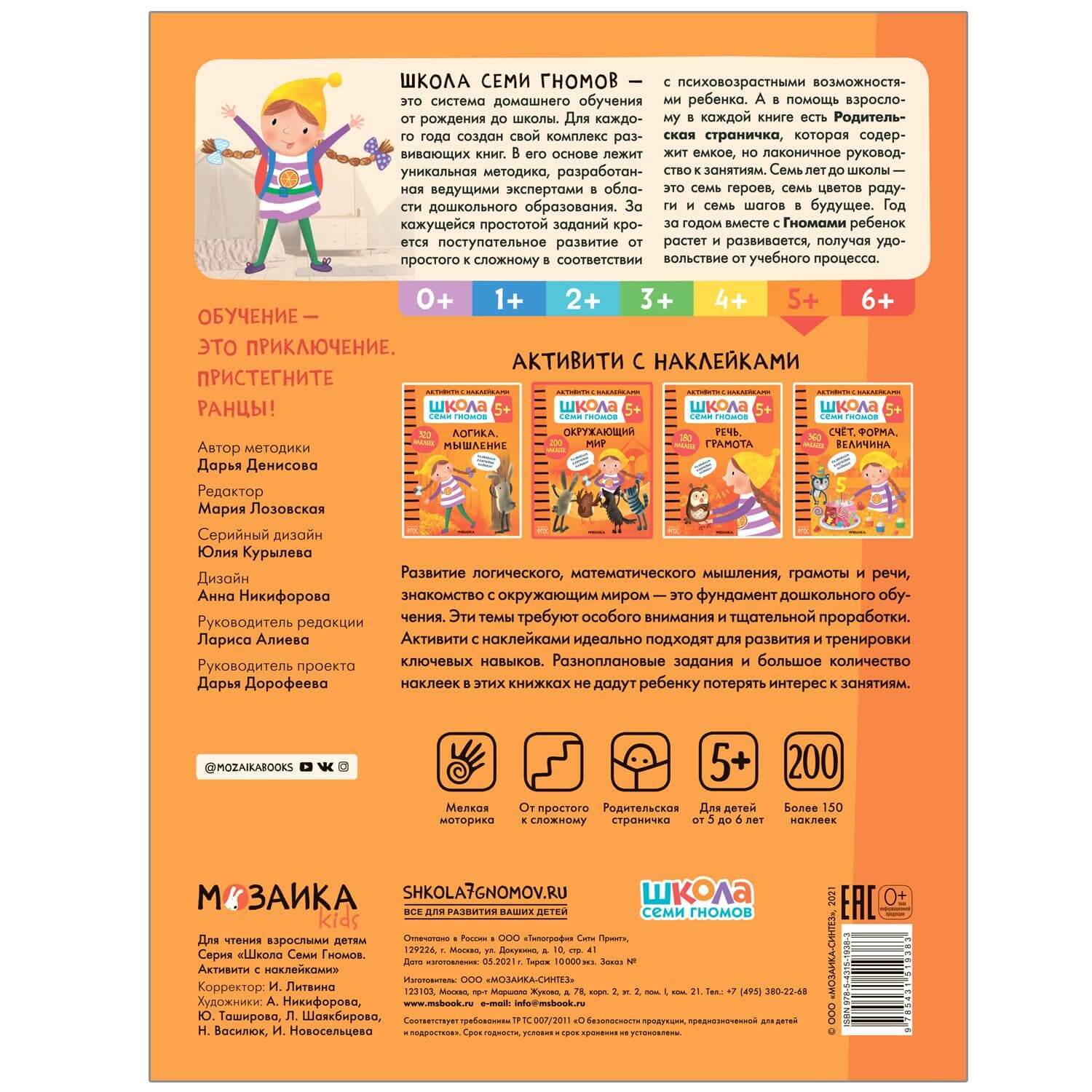 Книга «Окружающий мир 5+» из серии «Школа Семи Гномов. Активити с наклейками» предназначена для расширения кругозора и знаний об окружающем мире детей от 5 до 6 лет.