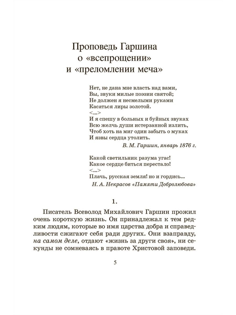 Все рассказы и новеллы Всеволода Михайловича Гаршина (1855–1888) пронизывает трагическое начало. Как герой написанной им новеллы-притчи «Красный цветок», он всю ответственность за зло мира брал на себя и хотел его победить. Отсюда его манера письма — максимально нервная, субъективная, обнажающая самые сокровенные струны души рассказчика, говорящего от первого лица, как будто напрямую обращающегося к сердцу и чувству читателя — иными словами, взывая к другой чуткой, страдающей душе.