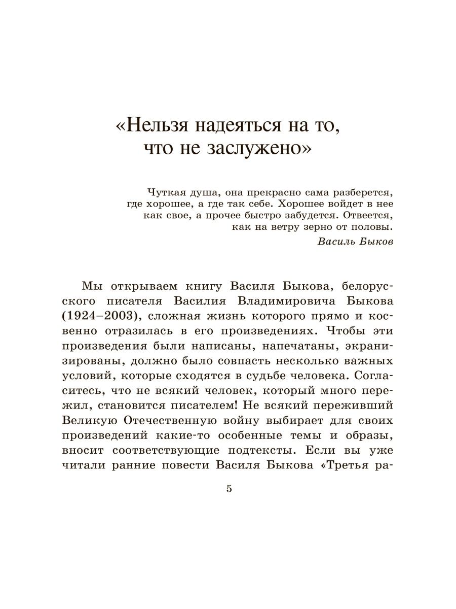 Василь Владимирович Быков (1924–2003) — советский и белорусский писатель, участник Великой Отечественной войны. Не удивительно, что военная тема стала главной в его творчестве. Произведения автора совсем не похожи на хронику военных будней, побед и поражений. Его волнуют вечные темы бытия, которые важны и для мира безвоенного — ответственности, честности, доверия, порядочности, милосердия.