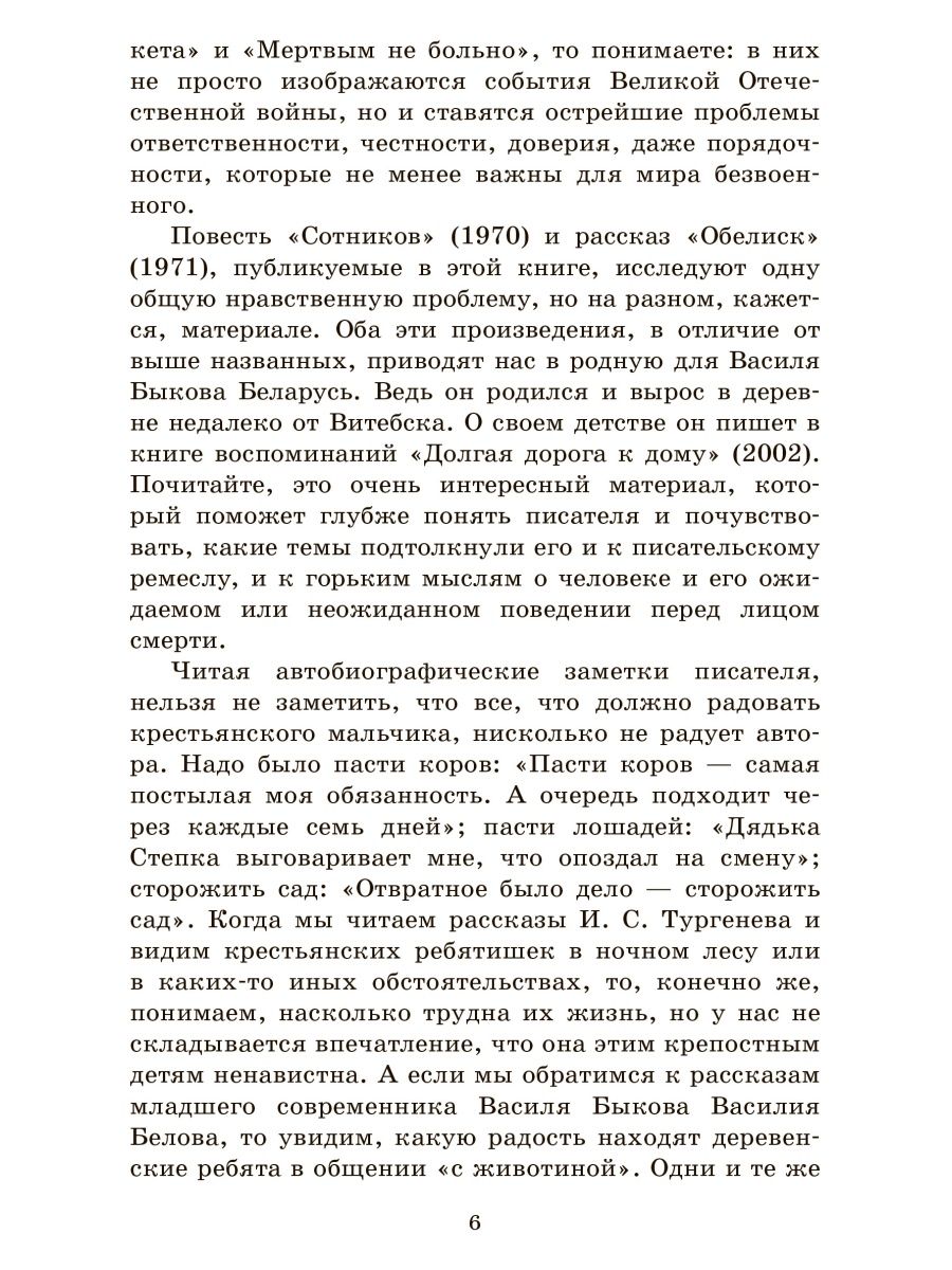 В сборник вошли две повести: «Сотников» и «Обелиск». Первая поднимает проблему нравственного выбора человека в критической ситуации, путь к подвигу — и путь к предательству. Вторая рассказывает о том, как легко опорочить человека бюрократическим росчерком пера и как трудно потом восстановить его честное имя. И как важно не быть равнодушными.
