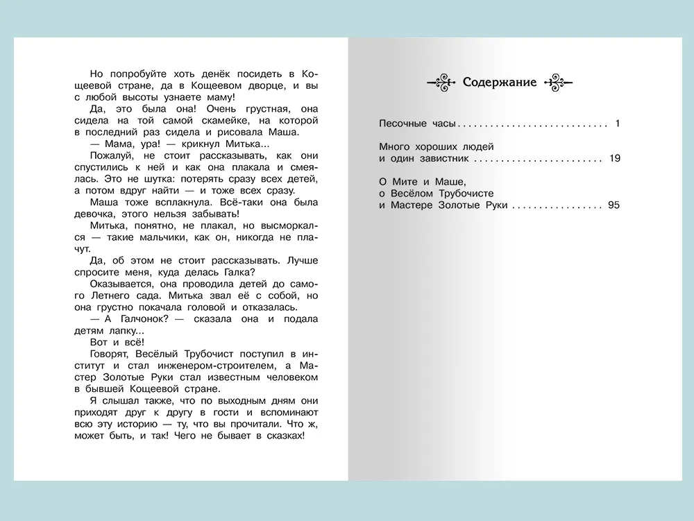 Вениамин Александрович Каверин — российский писатель, драматург и киносценарист, написавший множество известных на весь мир произведений, в том числе и для детей. В сборник «Три сказки» вошли произведения «Песочные часы» и «Много хороших людей и один Завистник», рассказывающие о невероятных приключениях школьников Тани и Петьки, а также сказка «О Мите и Маше, о Весёлом Трубочисте и Мастере Золотые Руки».
