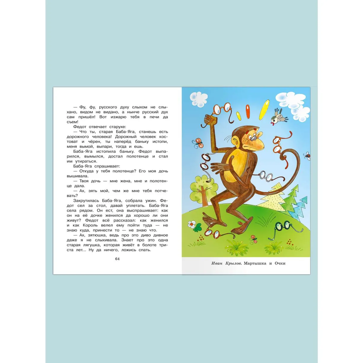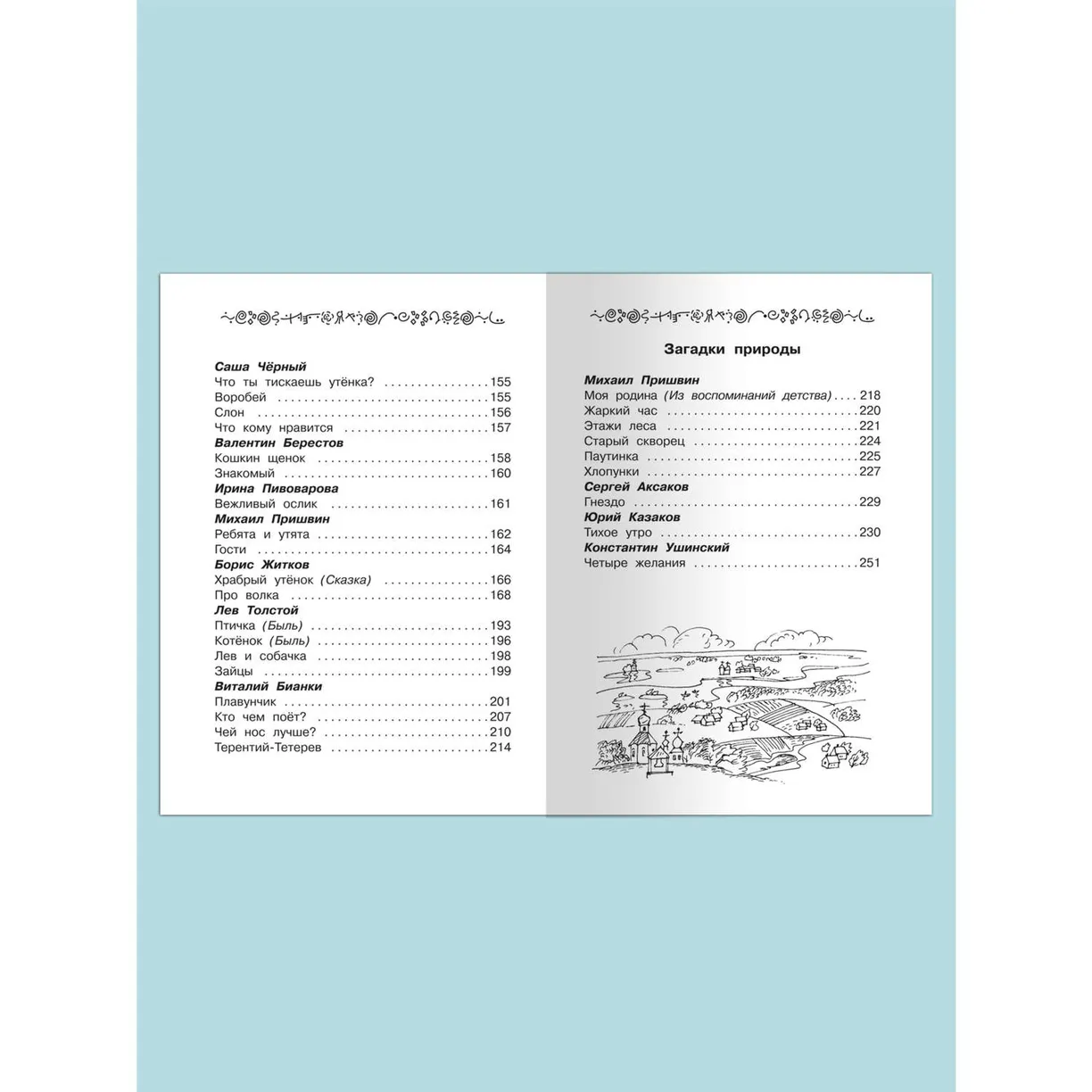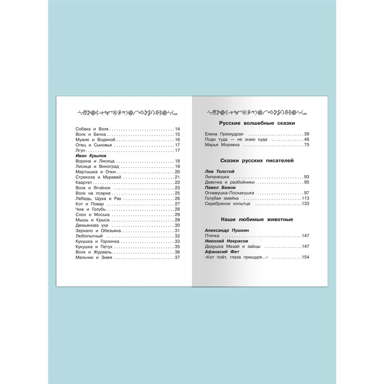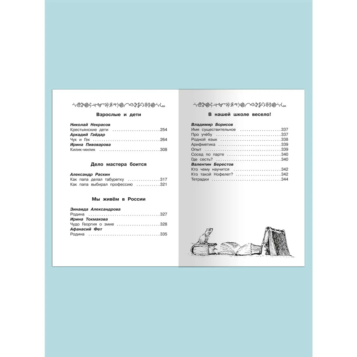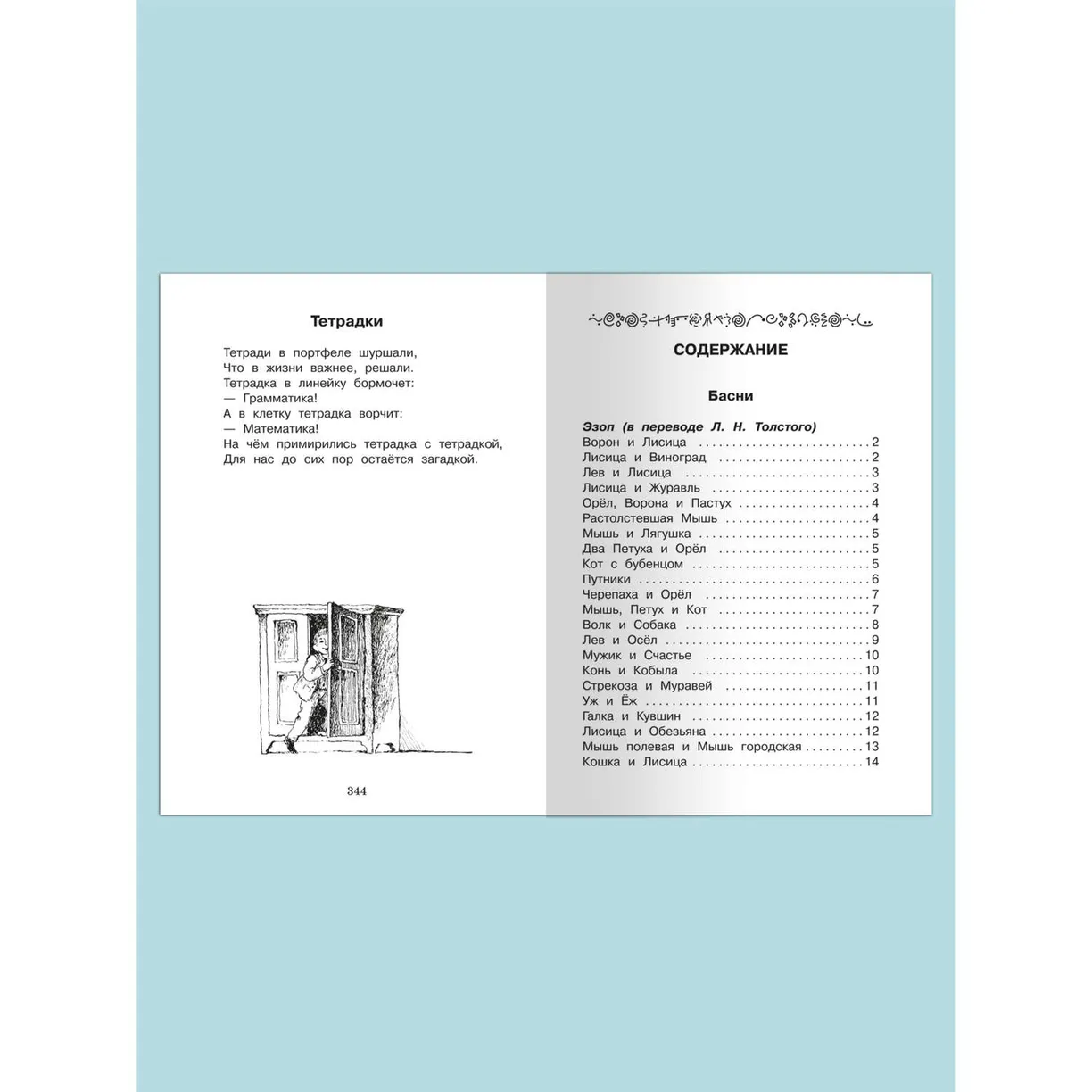 В сборник вошли рассказы, стихи и сказки известных писателей, рекомендованные к прочтению во втором классе общеобразовательной школы. Среди авторов – Эзоп (в переводе Льва Толстого), Иван Крылов, Лев Толстой, Александр Пушкин, Николай Некрасов, Афанасий Фет, Павел Бажов, Саша Чёрный, Валентин Берестов, Ирина Пивоварова, Михаил Пришвин, Борис Житков, Виталий Бианки, Сергей Аксаков, Юрий Казаков, Константин Ушинский, Аркадий Гайдар, Александр Раскин, Зинаида Александрова, Ирина Токмакова, Владимир Борисов. Тексты произведений представлены без сокращений, напечатаны на хорошей бумаге крупным шрифтом и содержат цветные иллюстрации ведущих российских художников. Издание среднего формата станет отличным дополнением домашней и школьной библиотеки и не займёт много места в рюкзаке школьника. Книги серии "Школьная библиотека" - идеальный подарок юным читателям. Дарите лучшее! Басни Эзоп (в переводе Л. Н. Толстого) Ворон и Лисица Лисица и Виноград Лев и Лисица Лисица и Журавль Орёл, Ворона и Пастух Растолстевшая Мышь Мышь и Лягушка Два Петуха и Орёл Кот с бубенцом Путники Черепаха и Орёл Мышь, Петух и Кот Волк и Собака Лев и Осёл Мужик и Счастье Конь и Кобыла Стрекоза и Муравей Уж и Ёж Галка и Кувшин Лисица и Обезьяна Мышь полевая и Мышь городская Кошка и Лисица Собака и Волк Волк и Белка Мужик и Водяной Отец и Сыновья Лгун Иван Крылов Ворона и Лисица Лисица и Виноград Мартышка и Очки Стрекоза и Муравей Квартет Волк и Ягнёнок Волк на псарне Лебедь, Щука и Рак Кот и Повар Чиж и Голубь Слон и Моська Мышь и Крыса Демьянова уха Зеркало и Обезьяна Любопытный Кукушка и Горлинка Кукушка и Петух Волк и Журавль Мальчик и Змея Русские волшебные сказки Елена Премудрая Поди туда — не знаю куда Марья Моревна Сказки русских писателей Лев Толстой Липунюшка Девочка и разбойники Павел Бажов Огневушка-Поскакушка Голубая змейка Серебряное копытце Александр Пушкин Птичка Николай Некрасов Дедушка Мазай и зайцы Афанасий Фет «Кот поёт, глаза прищуря…» Саша Чёрный Что ты тискаешь утёнка? Воробей Слон Что кому нравится Валентин Берестов Кошкин щенок Знакомый Ирина Пивоварова Вежливый ослик Михаил Пришвин Ребята и утята Гости Борис Житков Храбрый утёнок (Сказка) Про волка Лев Толстой Птичка (Быль) Котёнок (Быль) Лев и собачка Зайцы Виталий Бианки Плавунчик Кто чем поёт? Чей нос лучше? Терентий-Тетерев Михаил Пришвин Моя родина (Из воспоминаний детства) Жаркий час Этажи леса Старый скворец Паутинка Хлопунки Сергей Аксаков Гнездо Юрий Казаков Тихое утро Константин Ушинский Четыре желания Николай Некрасов Крестьянские дети Аркадий Гайдар Чук и Гек Ирина Пивоварова Килик-милик Александр Раскин Как папа делал табуретку Как папа выбирал профессию Зинаида Александрова Родина Ирина Токмакова Чудо Георгия о змие Афанасий Фет Родина Владимир Борисов Имя существительное Про учёбу Родной язык Арифметика Опыт Сосед по парте Где сесть? Валентин Берестов Кто чему научится Кто такой Нофелет? Тетрадки