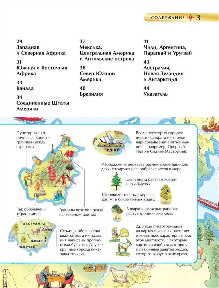 Этот географический атлас — кладезь информации для школьников! Благодаря продуманной системе пиктограмм ученики быстро и без утомительных повторений выучат особенности рельефа, климатические зоны и залежи полезных ископаемых различных стран; запомнят флору и фауну разных уголков Земли; узнают о традиционных профессиях и областях экономики тех или иных государств; познакомятся с природными чудесами света, национальными достопримечательностями и памятниками архитектуры. Рубрика «Это факт!» добавит любопытные и полезные сведения о странах мира в копилку знаний школьника, а подробный указатель поможет ему быстро найти нужный географический объект.