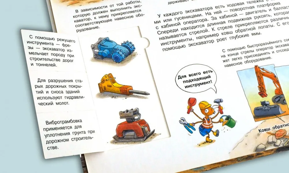 Иллюстрированная энциклопедия «Что? Почему? Зачем? Строительные машины», выпущенная в серии «Для почемучек» издательства «Омега», расскажет много интересного о видах техники, используемой при строительстве.