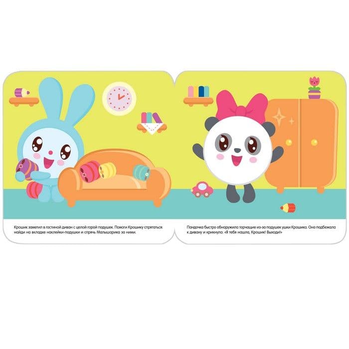 А Вы любите играть в прятки? С этой яркой книжкой ребенок побывает в доме, познакомится с очаровательными Малышариками и поиграет с ними в прятки. Малыш с удовольствием поможет спрятаться Барашку, Нюшеньке, Пандочке, Ежику и другим героям, заклеив их красочными наклейками. Занятия по книжкам серии Прятки с Малышариками принесут не только радость, но и пользу. Они способствуют развитию речи, интеллекта, мелкой моторики, координации движений, умения находить и принимать решения, а также расширяют представления об окружающем мире.