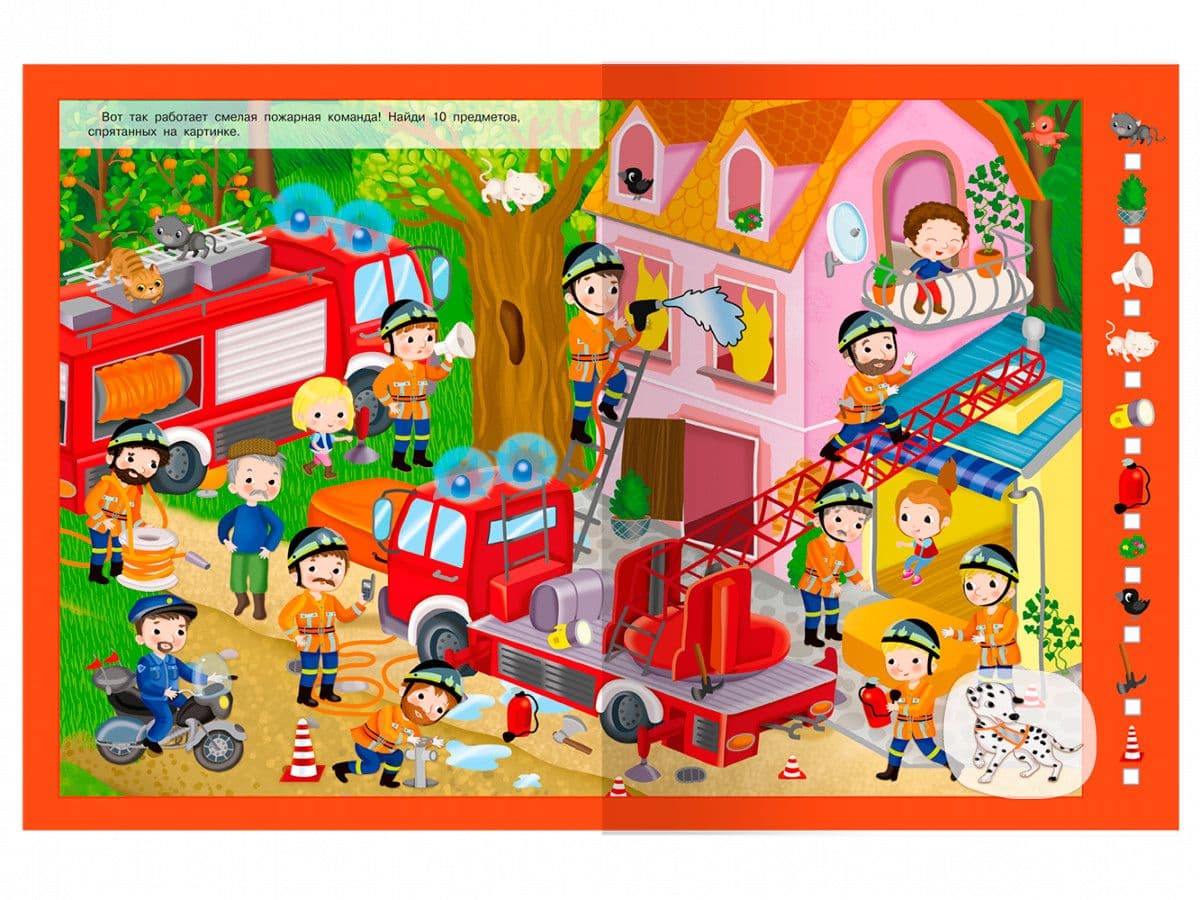 «Ламы, пожарные и котята» серии «Найди и покажи» — это книга с наклейками, великолепными иллюстрациями и увлекательными заданиями. На каждом развороте изображены яркие весёлые картинки с множеством деталей, а также предлагается выполнить задания: отыскать предметы, найти отличия, пройти лабиринт и другие. Все картинки отличаются по тематике, а также в книге содержится много красочных наклеек, поэтому скучно точно не будет!