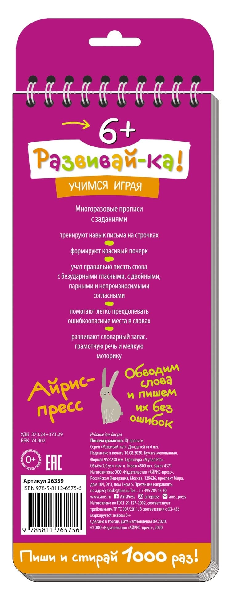 • Многоразовые прописи на пружинке. 6+ Пишем грамотно. Более 400 слов.- купить в магазине Кассандра, фото, 9785811265756,
