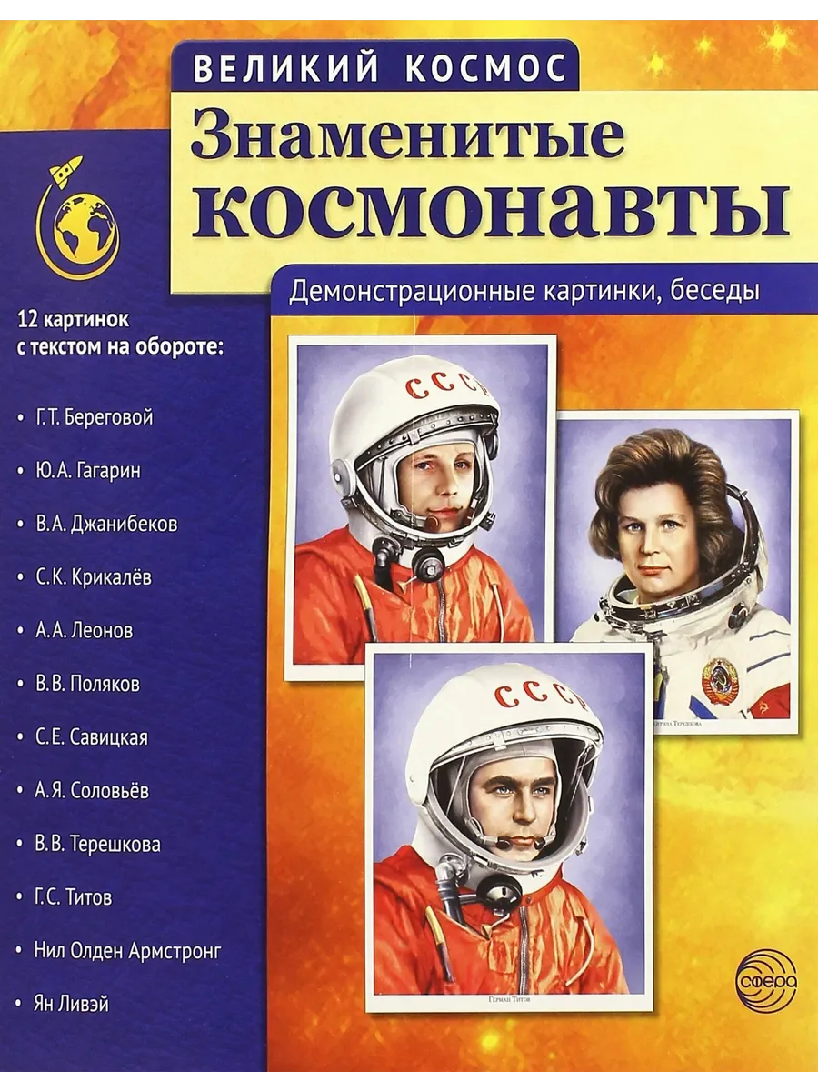 Великий космос. Знаменитые космонавты. 12 демонстр. картинок с текстом (210x250 мм) - купить в магазине Кассандра, фото, 9785994912713,