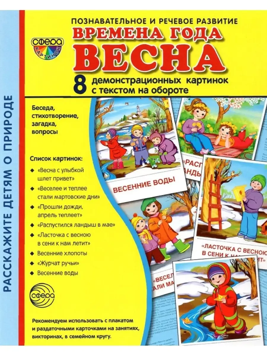 Дем. картинки СУПЕР Времена года. Весна. 16 раздаточных карточек с текстом(63х87мм) - купить в магазине Кассандра, фото, 9785994912614,