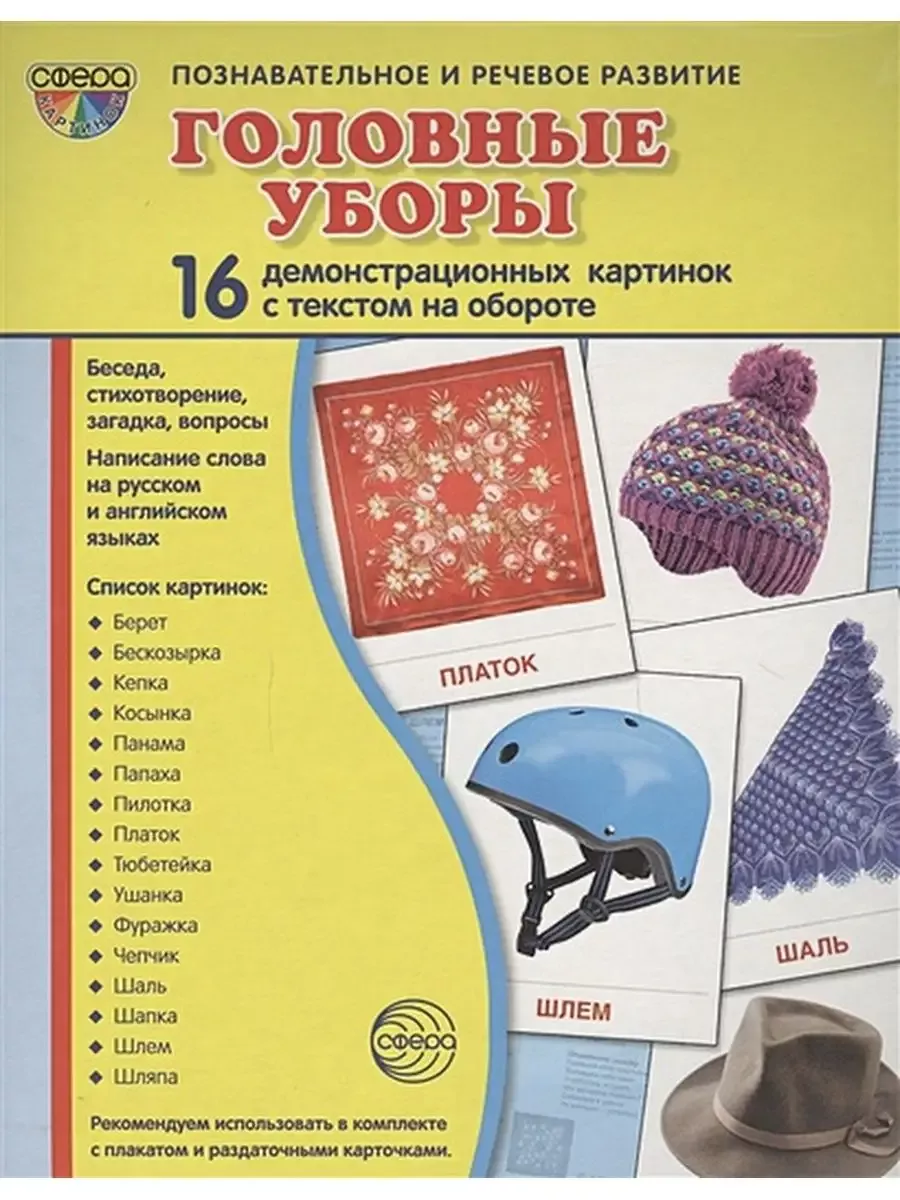 Дем. картинки СУПЕР. Головные уборы.16 демонстр. картинок с текстом (173х220 мм) - купить в магазине Кассандра, фото, 9785994918074,