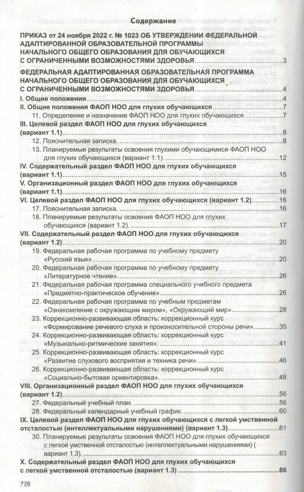 Настоящее издание содержит текст Федеральной адаптированной образовательной программы начального общего образования для обучающихся с ограниченными возможностями здоровья (ФАОП НОО), утвержденной Приказом Министерства просвещения Российской Федерации от 24 ноября 2022 г. № 1023.ФАОП НОО предназначена для сопровождения деятельности образовательной организации по созданию адаптированных основных общеобразовательных программ начального общего образования обучающихся с ограниченными возможностями здоровья (АООП НОО) и отражает вариант конкретизации требований федерального государственного образовательного стандарта начального общего образования обучающихся с ограниченными возможностями здоровья (ФГОС НОО обучающихся с ОВЗ), утвержденной Приказом Министерства просвещения Российской Федерации от 24 ноября 2022 г. № 1022.