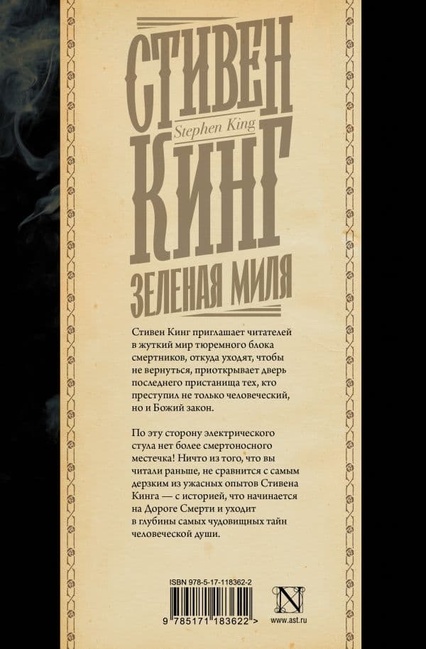 Стивен Кинг приглашает читателей в жуткий мир тюремного блока смертников, откуда уходят, чтобы не вернуться, приоткрывает дверь последнего пристанища тех, кто преступил не только человеческий, но и Божий закон. По эту сторону электрического стула нет более смертоносного местечка! Ничто из того, что вы читали раньше, не сравнится с самым дерзким из ужасных опытов Стивена Кинга – с историей, что начинается на Дороге Смерти и уходит в глубины самых чудовищных тайн человеческой души…