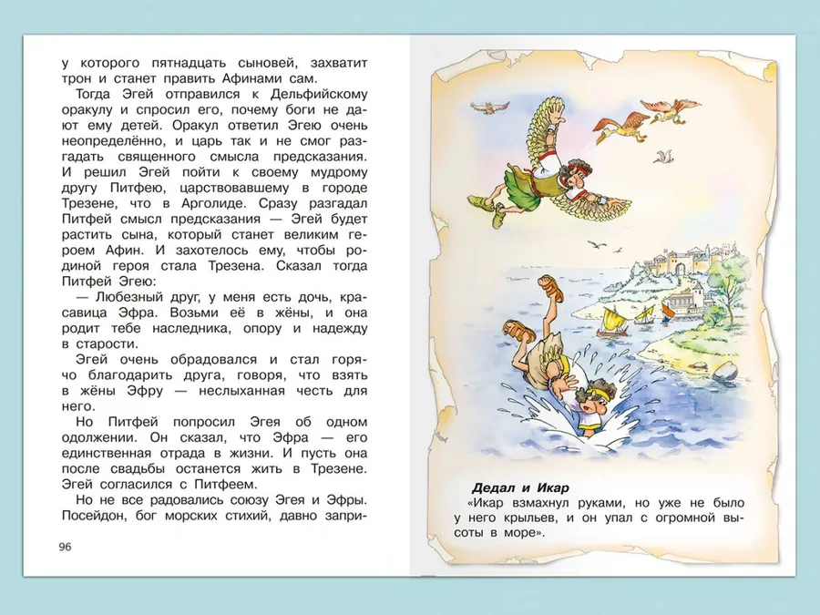 Книга является сборником историй, в которых повествуется о представлениях древних греков об устройстве мира и приключениях знаменитых полубогов Геракла, Тесея, Персея и других героях древнегреческой мифологии. Произведение адресовано детям младшего и среднего школьного возраста. Текст повести представлен без сокращений, напечатан на хорошей бумаге крупным шрифтом и содержит яркие иллюстрации А. И. Резникова. Средний формат, твёрдая обложка и небольшой вес издания делают его удобным для домашней или школьной библиотеки. Также книга не займёт много места в рюкзаке школьника.