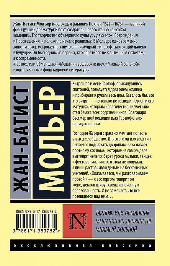 • Тартюф, или обманщик. Мещанин во дворянстве. Мнимый больной- купить в магазине Кассандра, фото, 9785171455521,