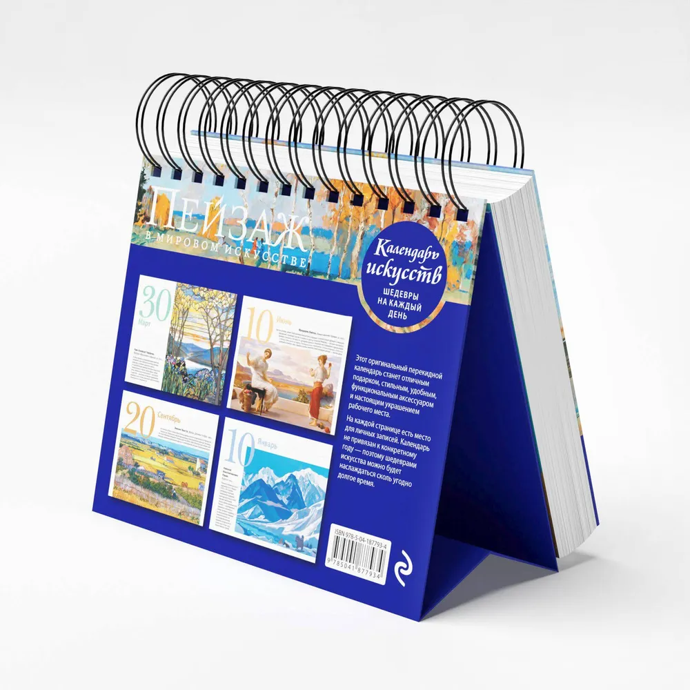 Вечный календарь «Пейзаж в мировом искусстве» из серии «Шедевры на каждый день» — это креативная инновация во Вселенной искусства. Календарь объединяет в себе достоинства художественного альбома, картинной галереи и путеводителя по изобразительному искусству.
