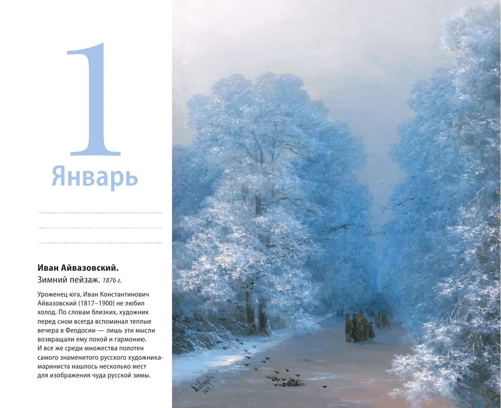 подарочных календарей «Шедевры на каждый день». И пусть утонченный и изысканный дух великих художников вдохновит вас на большие планы и смелые решения.