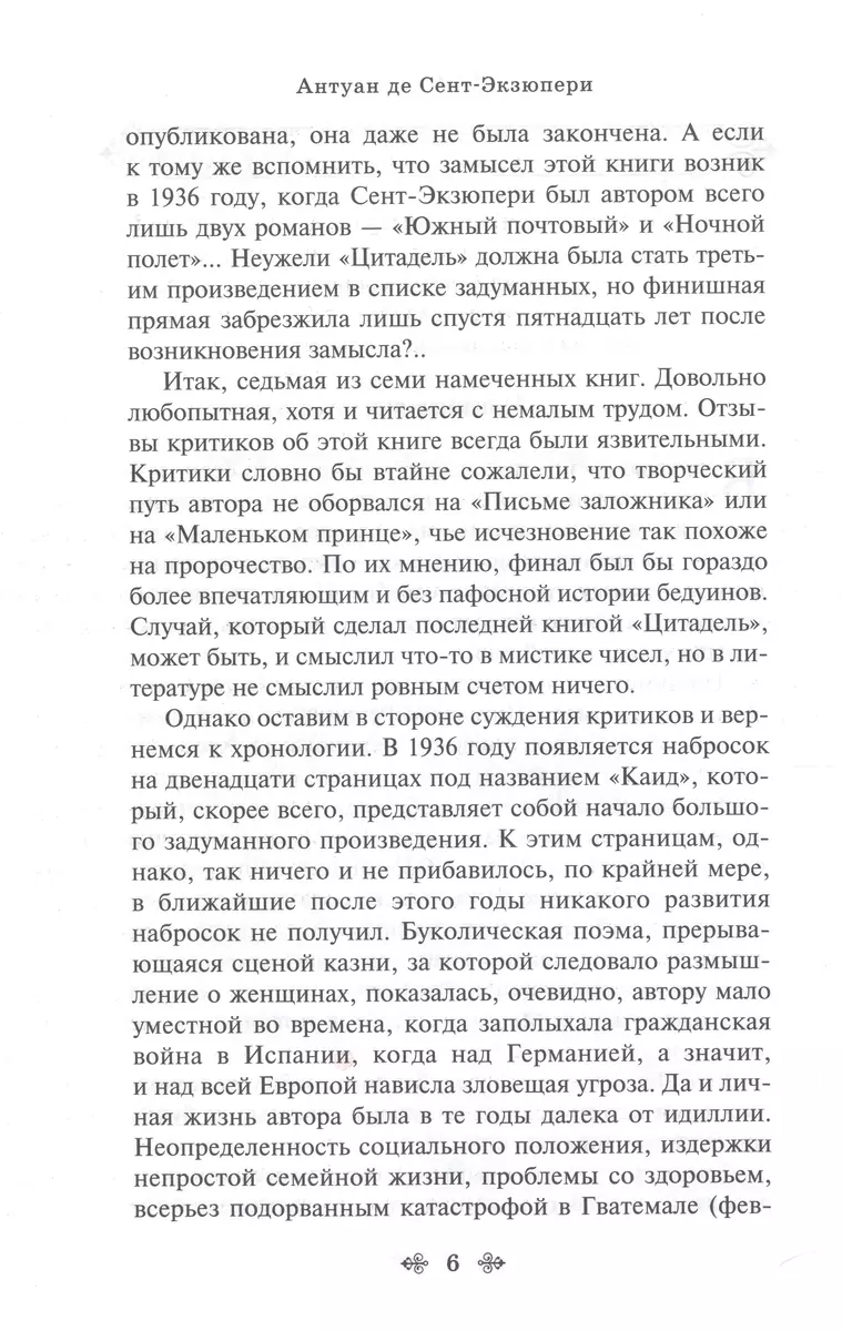 «Цитадель» — величайшее творение Антуана де Сент-Экзюпери, вершина его художественной философии. Эта мощная, несокрушимая литературная крепость возводилась писателем в течение долгих лет с максимальной отдачей и бесконечной любовью.