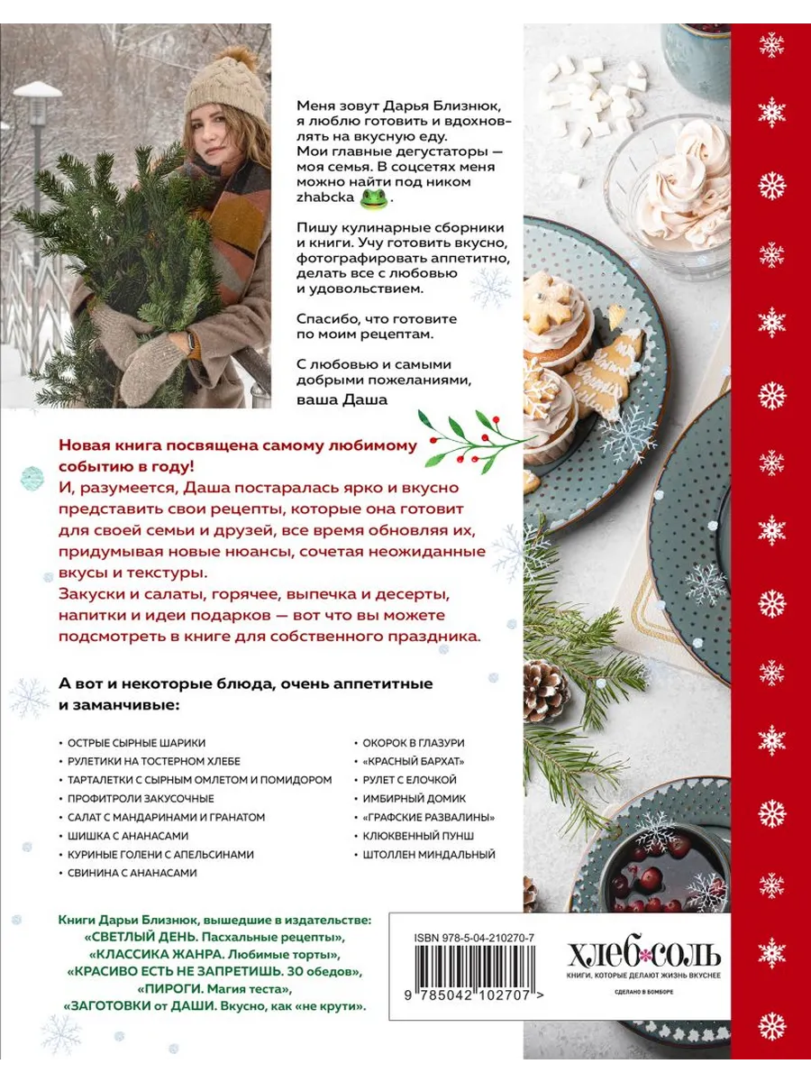 Новое оформление новогодней книги! Дарья Близнюк, известная в социальных сетях, у которой вышло уже пять кулинарных книг, посвятила эту книгу самому любимому событию в году и постаралась ярко и вкусно представить новогодние рецепты, которые она готовит для своей семьи и друзей, все время обновляя их, придумывая новые нюансы, сочетая неожиданные вкусы и текстуры. Рецепты подробно описаны и красочно проиллюстрированы авторскими фото. Закуски и салаты, горячее, выпечка и десерты, напитки и идеи подарков — вот что вы можете подсмотреть в книге для собственного праздника.