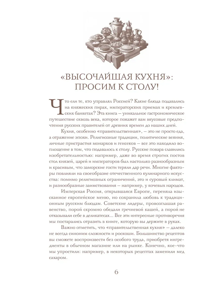 На эти вопросы ответит эта книга, которая расскажет не только о блюдах, которые едали Иван Грозный и Петр I, Елизавета Петровна и Екатерина II, Николай I и Николай II, все Александры — императоры российские, но и представит рецепты кушаний советских лидеров: В. Ленина, И. Сталина, Н. Хрущева, Л. Брежнева, Ю. Андропова, а также президентов России Б. Ельцина и В. Путина. И, между прочим, все они, независимо от того, царь или генсек, обожали русские похлебки, каши, котлеты и пироги. Вы удивитесь, насколько неприхотливы в еде люди, стоящие на вершине государственной власти.