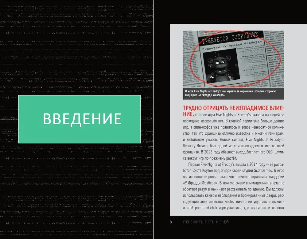 "Пережить пять ночей" позволяет окунуться в историю, лор и пугающий нарратив любимой игры и предоставляет полезную и занимательную информацию о происхождении и сути загадочных персонажей франшизы.