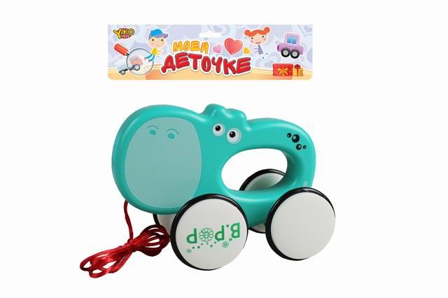 Каталка на веревочке "Бегемотик" (15см*13см, длина веревки 80 см), пакет (арт. M1032) - купить в магазине Кассандра, фото, 4680088457222,