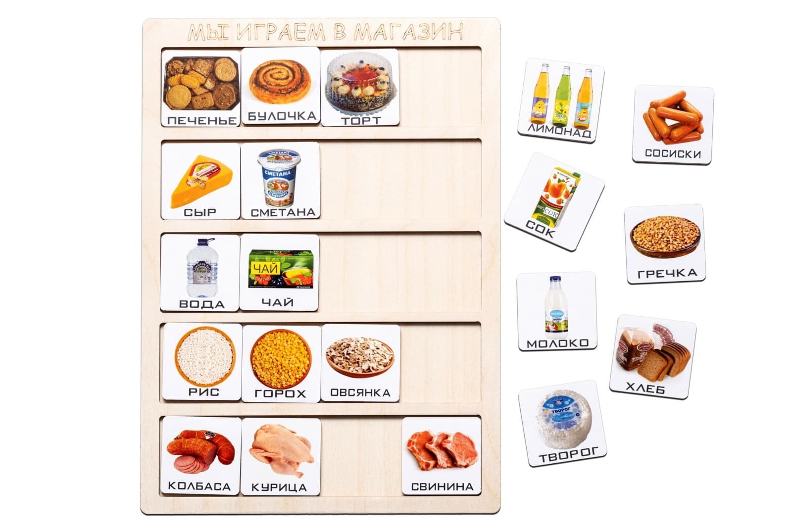 2. Выкладывайте продукты на витрину, сортируя их по группам: молочные продукты, мясо, напитки и т.д.