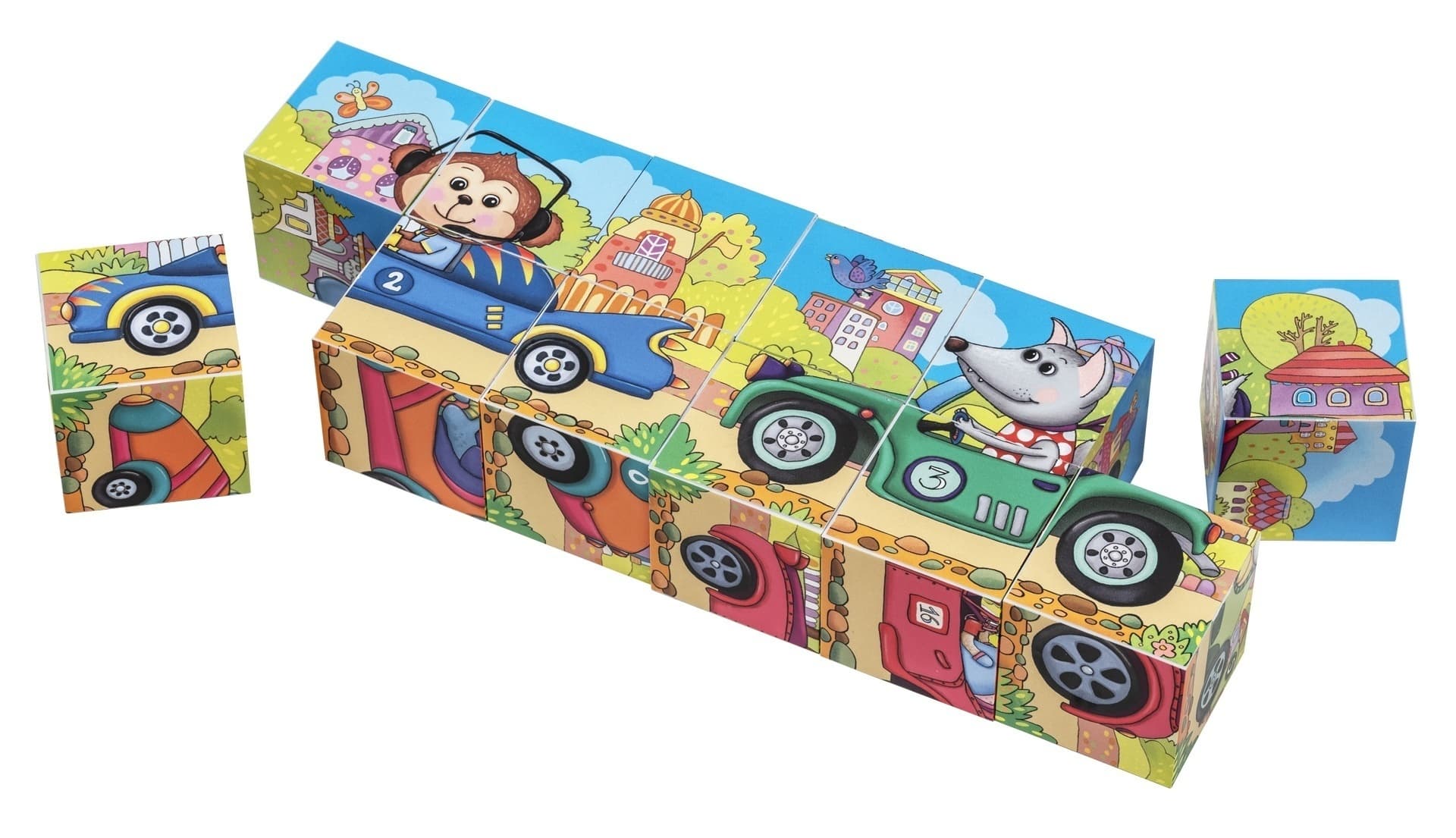 -Умные кубики в поддончике (длинные). 12 штук. Мчимся на машинах