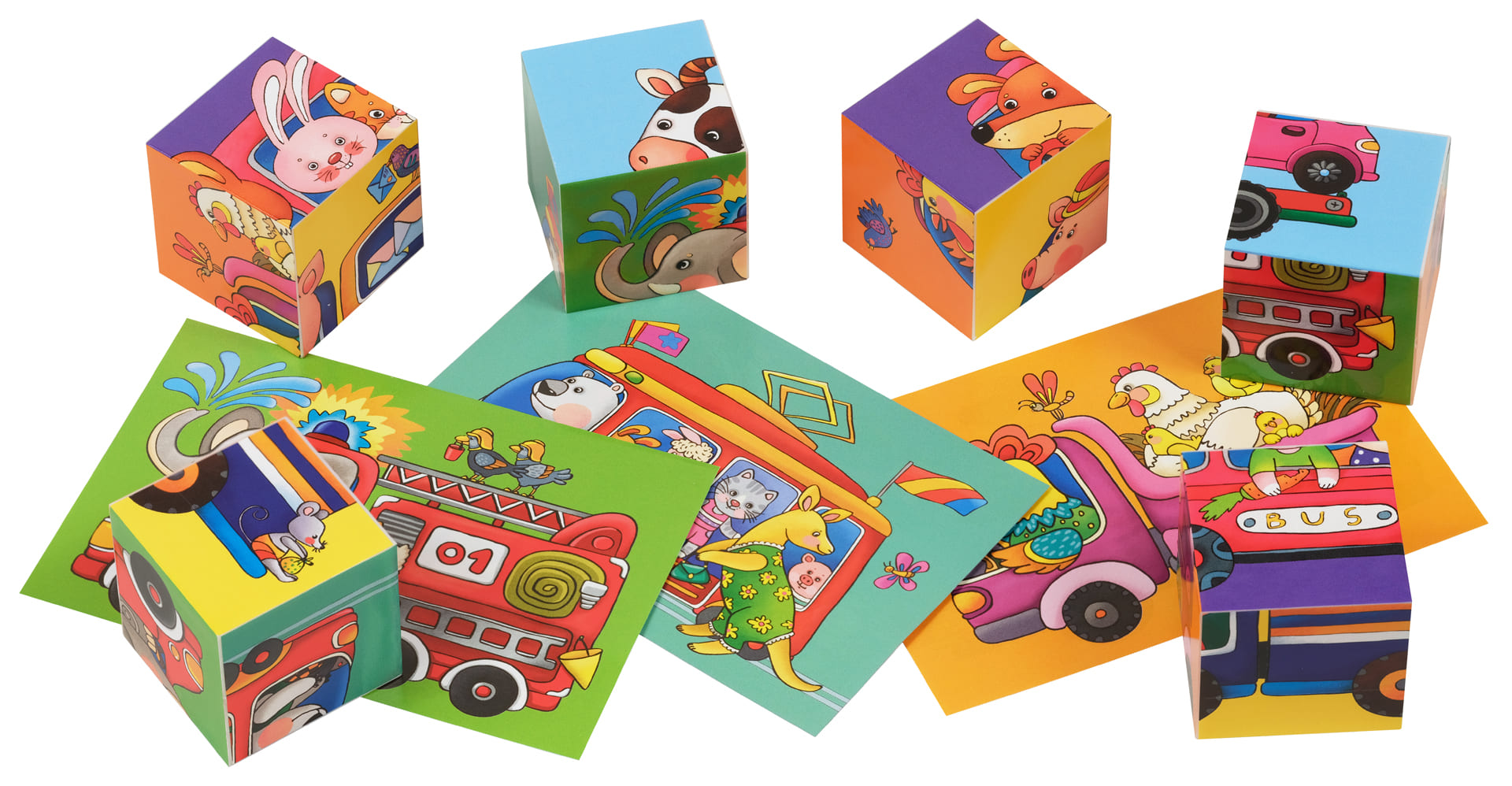 • Умные кубики  в поддончике. 6 штук. Мы едем на машинках (новые)- купить в магазине Кассандра, фото, 4650388210582,