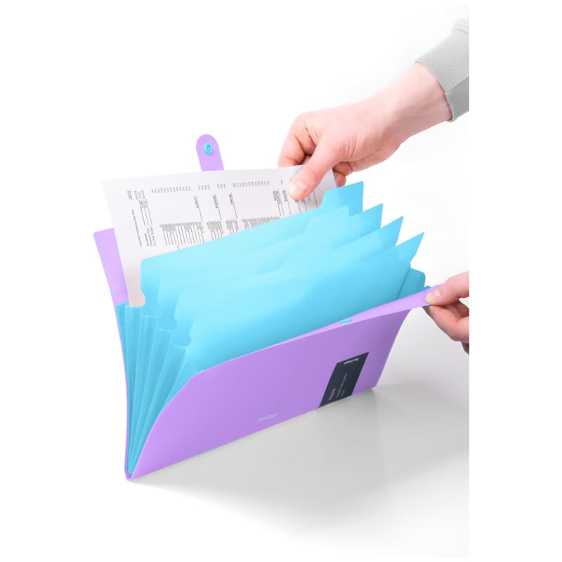 Папка пластиковая на кнопке с отделениями Berlingo "Haze" формата А4 с рисунком. Обложка с эффектом софт-тач. Цвет обложки - сиреневый. 5 внутренних отделений для удобного хранения и организации документов. Каждое отделение с индексным полем, позволяет сортировать документы по темам или алфавиту. Надежная застежка-кнопка. Контрастный голубой цвет отделений. Быстрый доступ к содержимому. Изготовлена из высококачественного полипропилена с матовой текстурой поверхности "песок", на которой не видно отпечатков пальцев и мелких царапин. Предназначена для хранения и транспортировки документов. Толщина обложки 600мкм. Вмещает до 200 листов. Размер 245*325*10. Упакована в индивидуальный прозрачный пакет по форме.