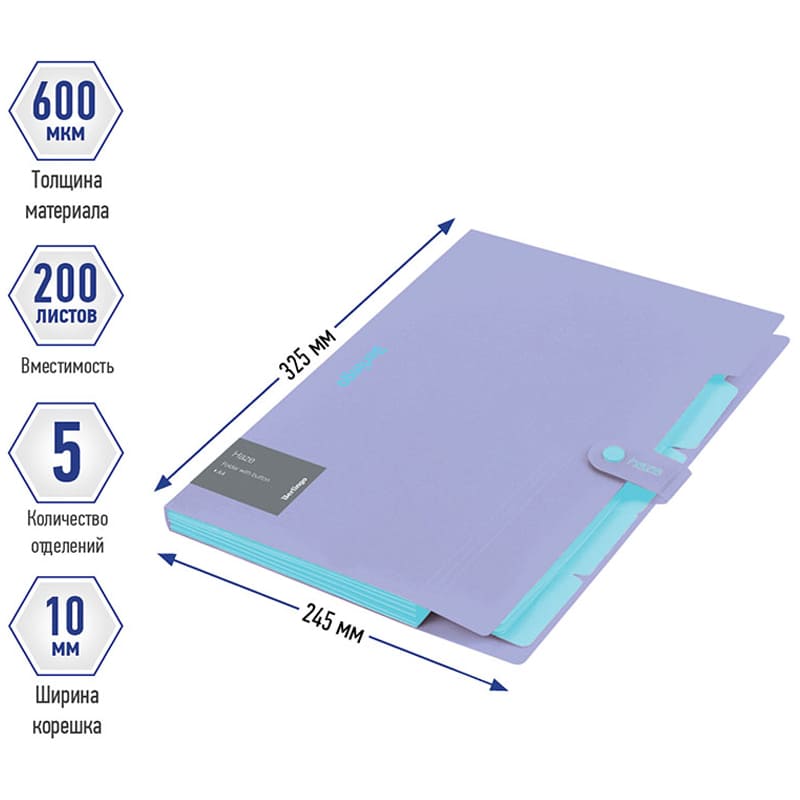 • Папка 5 отделений Berlingo "Haze", А4, 600мкм, на кнопке, сиреневая, софт-тач- купить в магазине Кассандра, фото, 4260709080369,