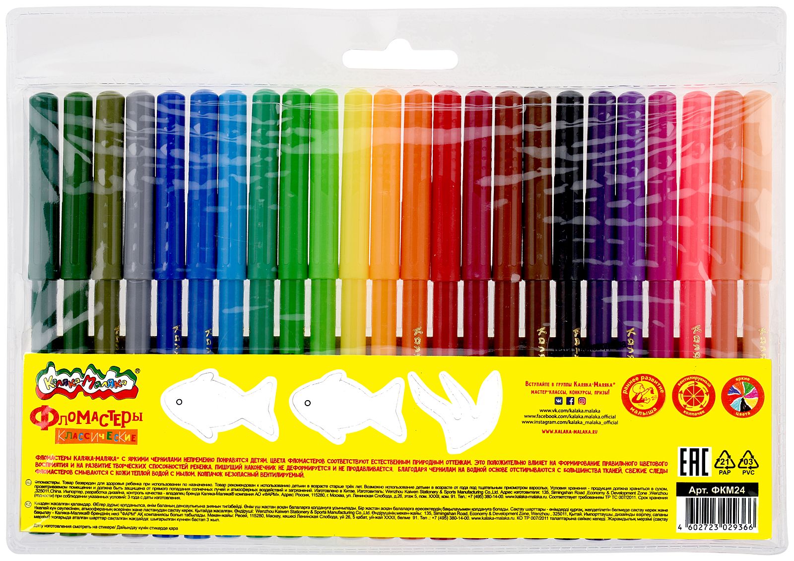 Фломастеры Каляка-Маляка® одни из самых ярких, долговечных и безопасных фломастеров на рынке. Разработаны для детей в возрасте от 3 лет.Выпускаются в картонной упаковке в пластиковом блистере с европодвесом. Толщина фломастера 9 мм. Диаметр пишущего наконечника 2 мм. В наборе 24 цветов.Фломастеры Каляка-Маляка® соответствуют самым высоким мировым стандартам качества и безопасности!