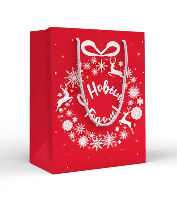 Пакет подарочный (M) венок с оленями - купить в магазине Кассандра, фото, 4690513504957,