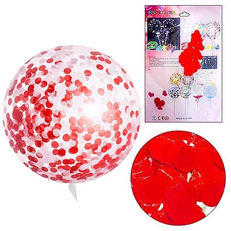 Шар латексный " KWELT " 20"/50см Bobo прозрачный с красными конфетти - купить в магазине Кассандра, фото, 6901891028866,