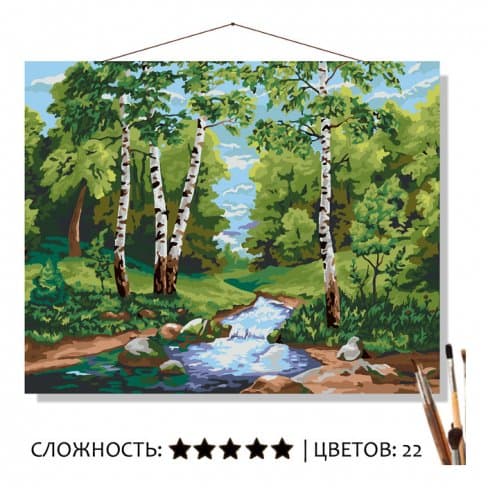 Картина по номерам на холсте 50х40 "Лесной ручей" - купить в магазине Кассандра, фото, 4660042951812,