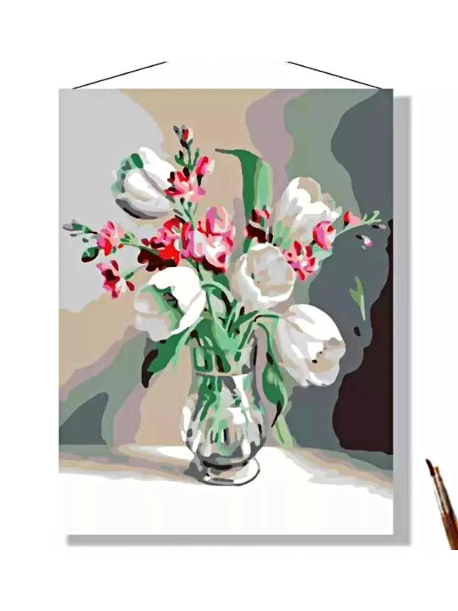 Картина по номерам на холсте 30х40 "Белые тюльпаны"