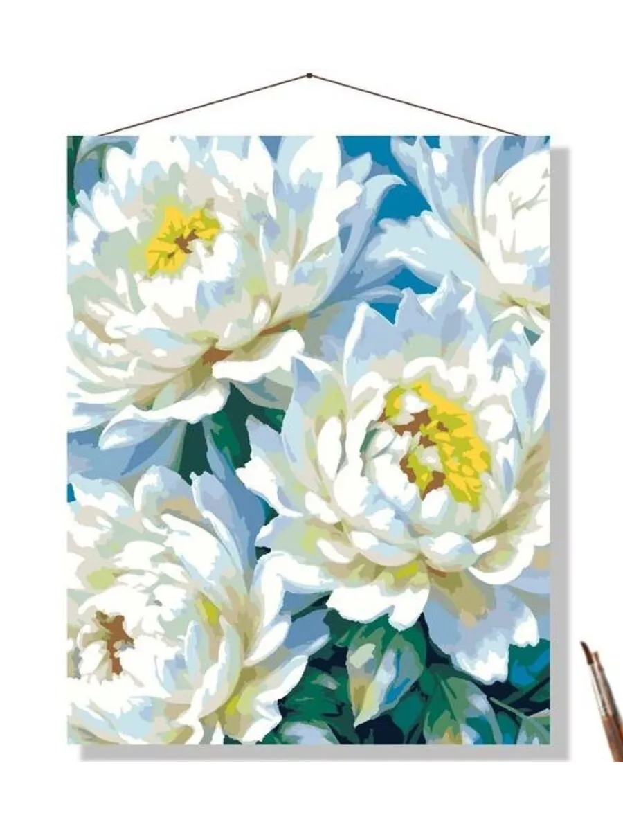 Картина по номерам на холсте 50х40 "Белые цветы" - купить в магазине Кассандра, фото, 4650224635173,