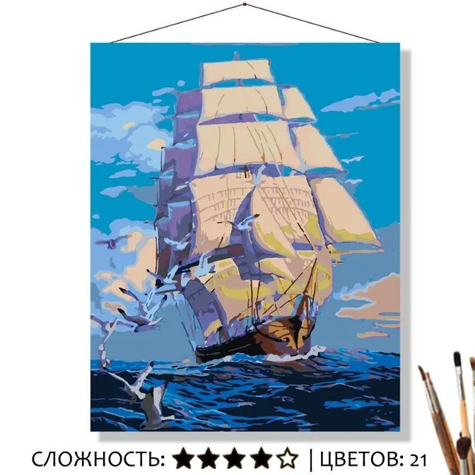 Картина по номерам на холсте 50х40 "Парусник" - купить в магазине Кассандра, фото, 4660042958279,