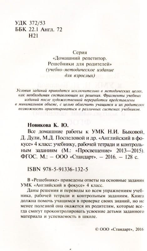 • ДР. Английский язык  4 класс Быкова,Поспелова "Англ. в фокусе". ФГОС- купить в магазине Кассандра, фото, 9785913361325,