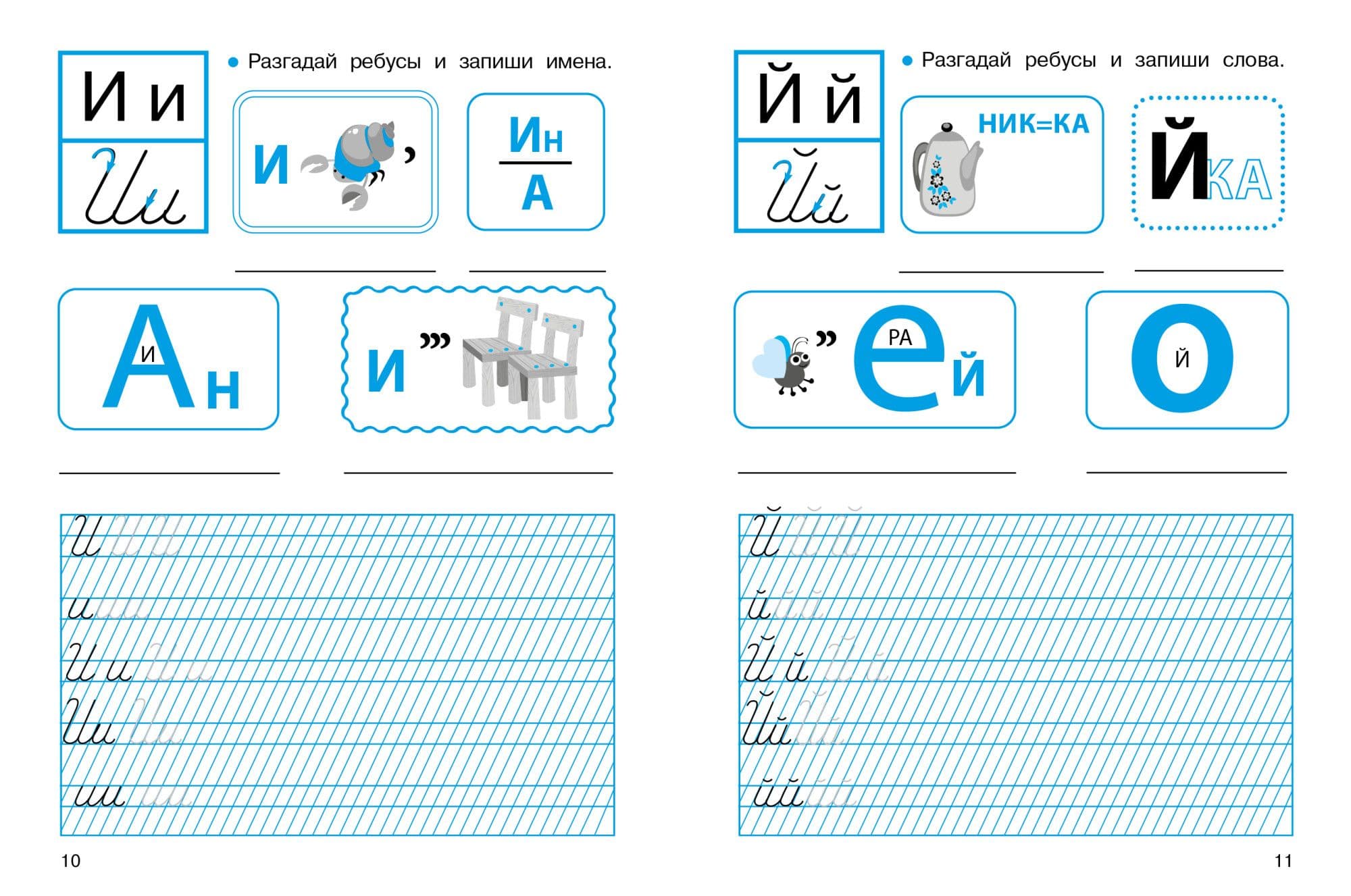 Пособие поможет первоклассникам освоить правильное написание и соединение букв, а разнообразные ребусы, головоломки и шарады разовьют память, внимание, логику и сообразительность.