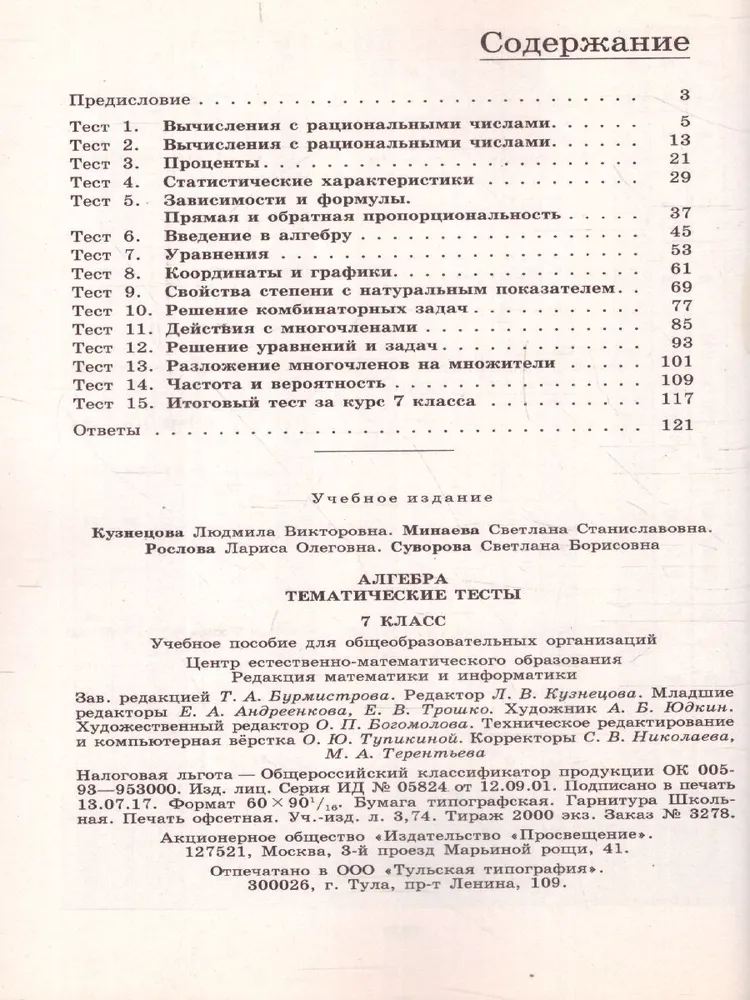 -Алгебра 7 класс Дорофеев. Тематические тесты. 2017. ФГОС